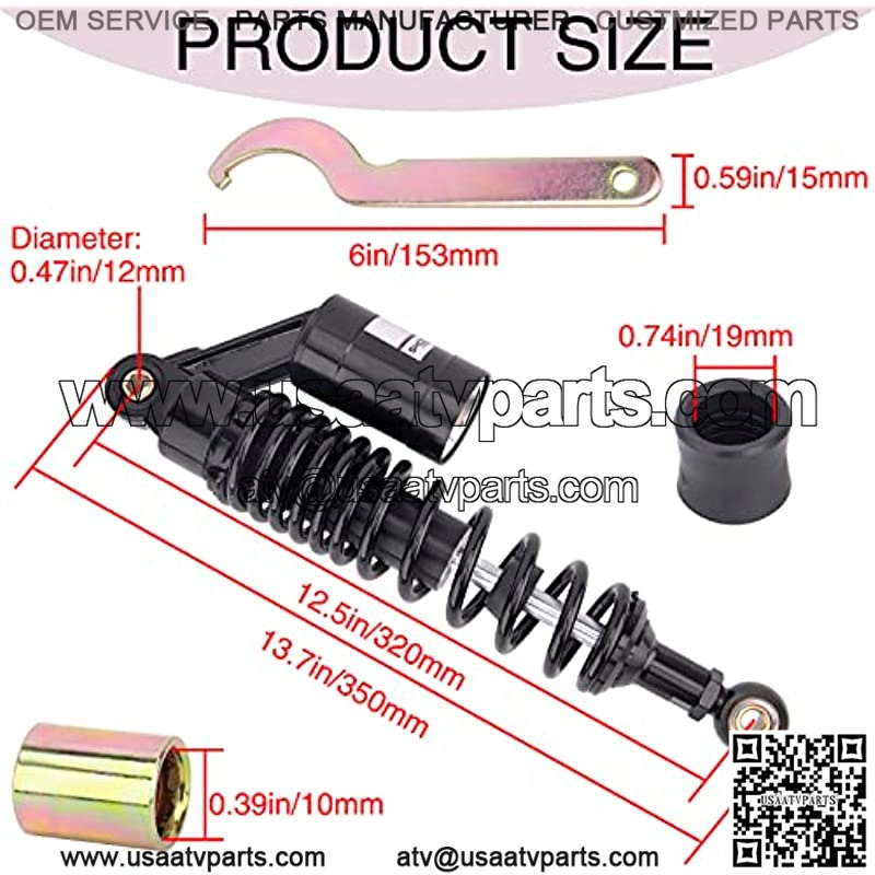 [Universal Motorcycle Air Shocks] Motorcycle Rear Shock Absorber is perfectly working on most 150cc~750cc Street Bike, Scooter, Go Kart and Moped Quad (ATV). Fit bike with motorcycle shocks of 320mm 12.6″ eye to eye distance. 320mm motorcycle shocks compatible with Honda Kawasaki Suzuki Yamaha 125cc 110cc. (Please be noted, if your vehicle is too heavy, especially for ATV, please kindly check the Maximum load of the shocks before placing order.)