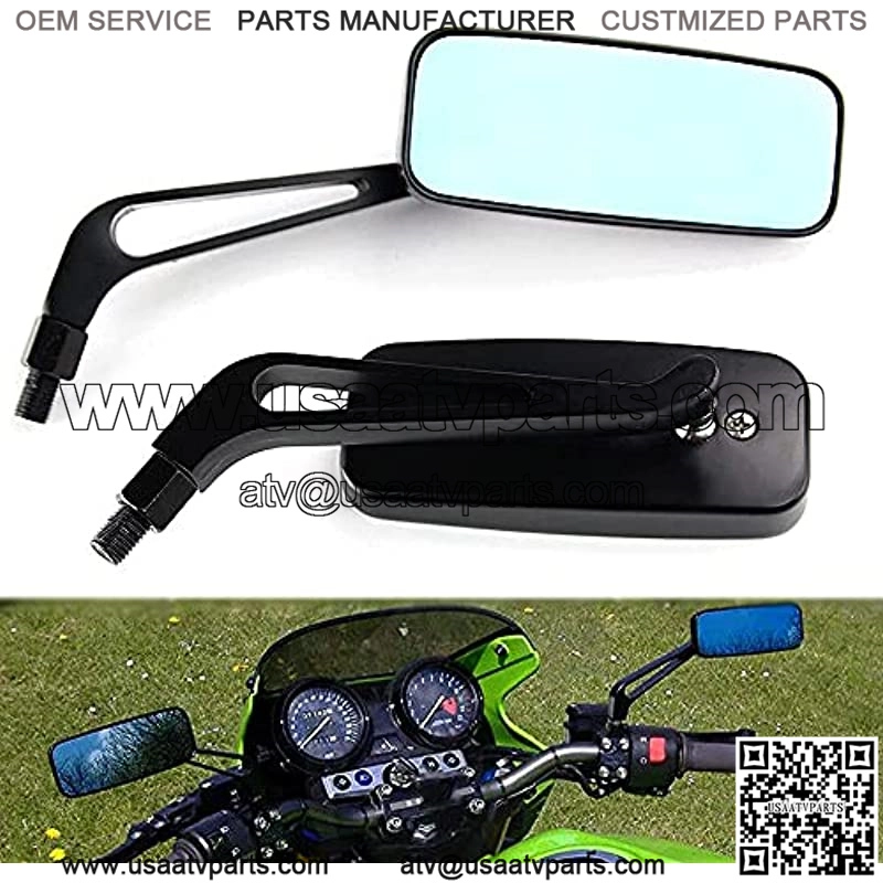 Motorcycle Rear View Mirror 8mm/10mm Rectangle Black Square Convex Smoke Blue Glass Handlebar Side Mirrors, For Harley Honda Suzuki Yamaha ATV Kawasaki Scooter Bobber Cruiser Chopper