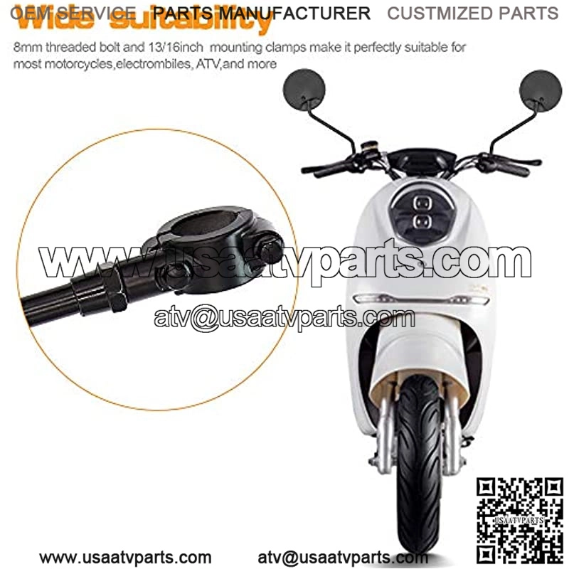 STURDY CONSTRUCTION:Made of high impact ABS shell and sturdy steel arm with 8mm threaded bolt and 7/8″ metal handlebar clamp for mirrors