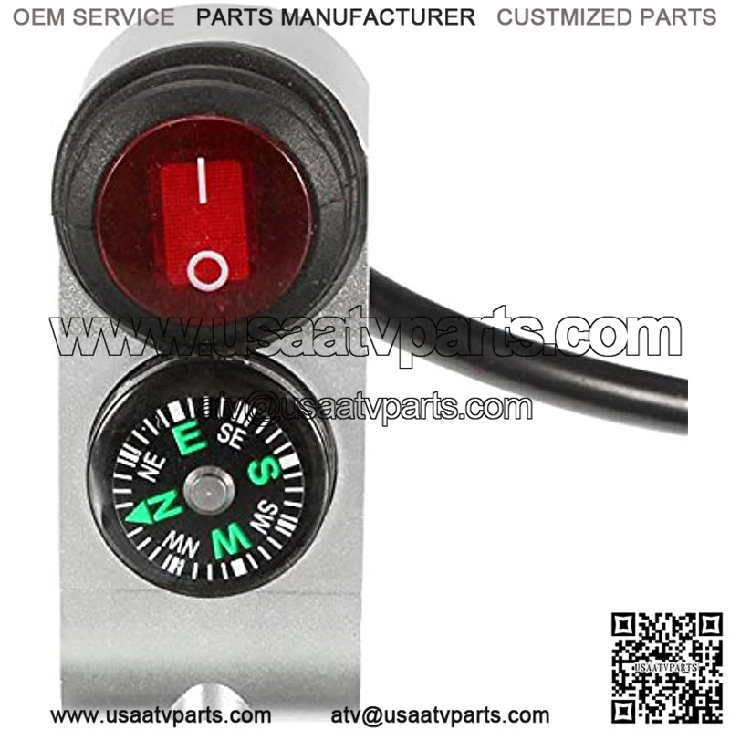 Motorcycle Waterproof ATV Handlebar Headlight Switch Hazard Brake Fog Light ON OFF Switches With Indicator Light Compass Silver
