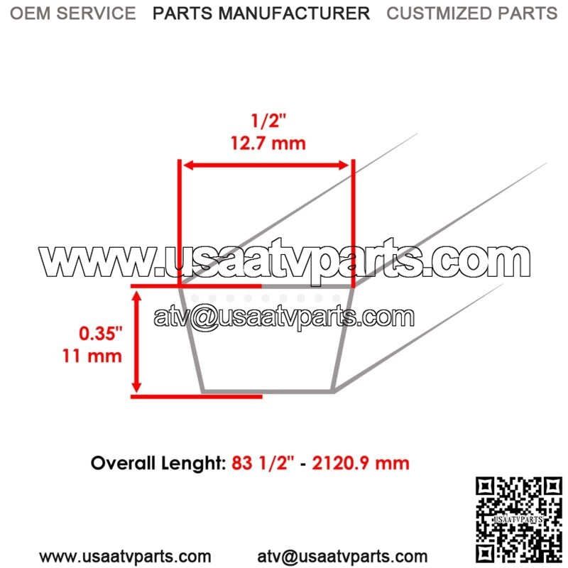 Primary Belt Overall Lenght: 83″ 1/2 | 2120.9mm