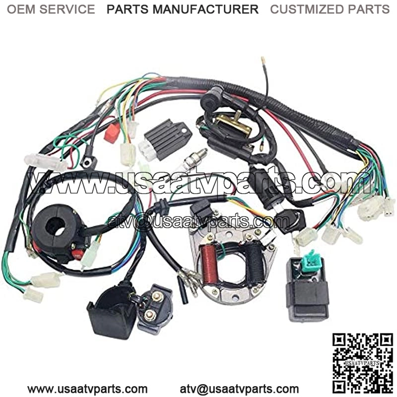 This is a complete electric start engine wiring harness loom,include 1x ATV Wire harness,1x CDI(5Pin AC),1x Solenoid Relay,1xRectifier (Voltage Regulator) ,1x Ignition Switch (2 keys, waterproof),1x Upgraded Multi-functional ATV Switch,1x Stator (Magneto Generator),1x Ignition Coil with lead and 1x Spark plug.Good value for money,easy for replacement.