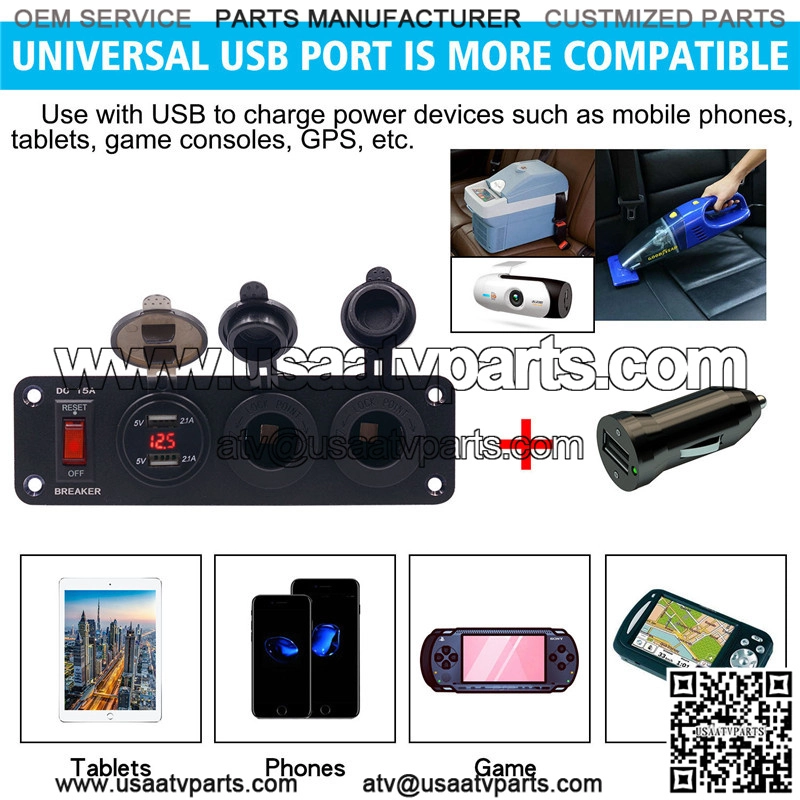 Product use: USB can be used to power mobile phones, tablets, IPAD, GPS and other vehicle-mounted products.