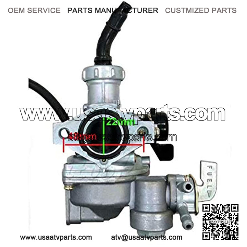 Mounting Holes Distance Centered: 48mm; Air filter mount: 40mm; Intake inner diameter: 22mm