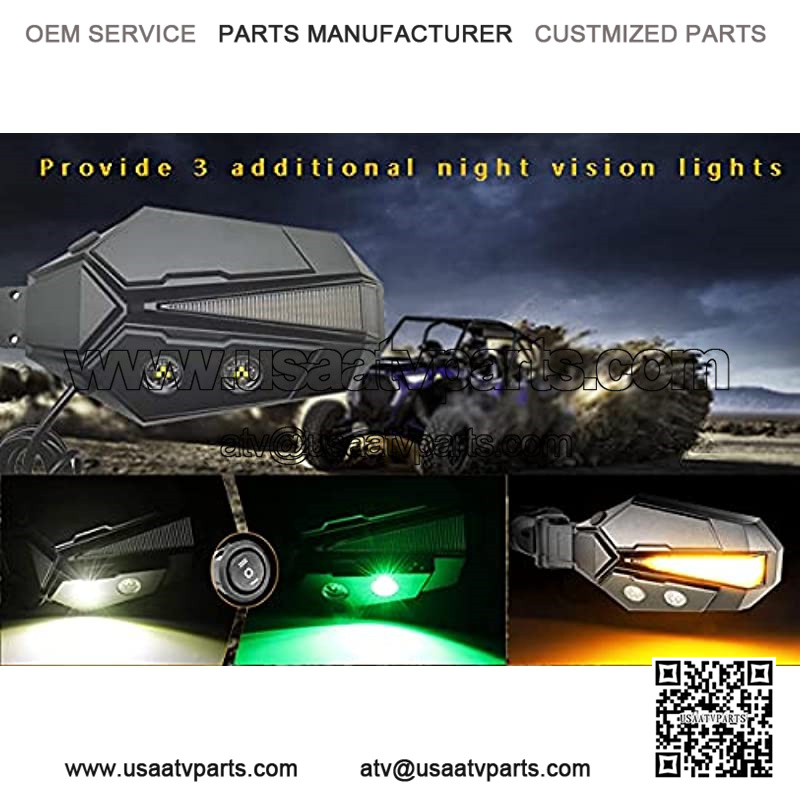 ??UNIQUE THREE LIGHTS??-NEW SUN UTV LED lighted side mirrors provide 3 additional night vision light, offer emeral Hawkeye Light can help you to find obstacles on the ground in time when getting on and off.The damber flowing turn signal light and spot ligght that make the driver safer when racing. Greatly enhance night vision and night driving ability, while the dazzling lights can make you stand out from the crowd.