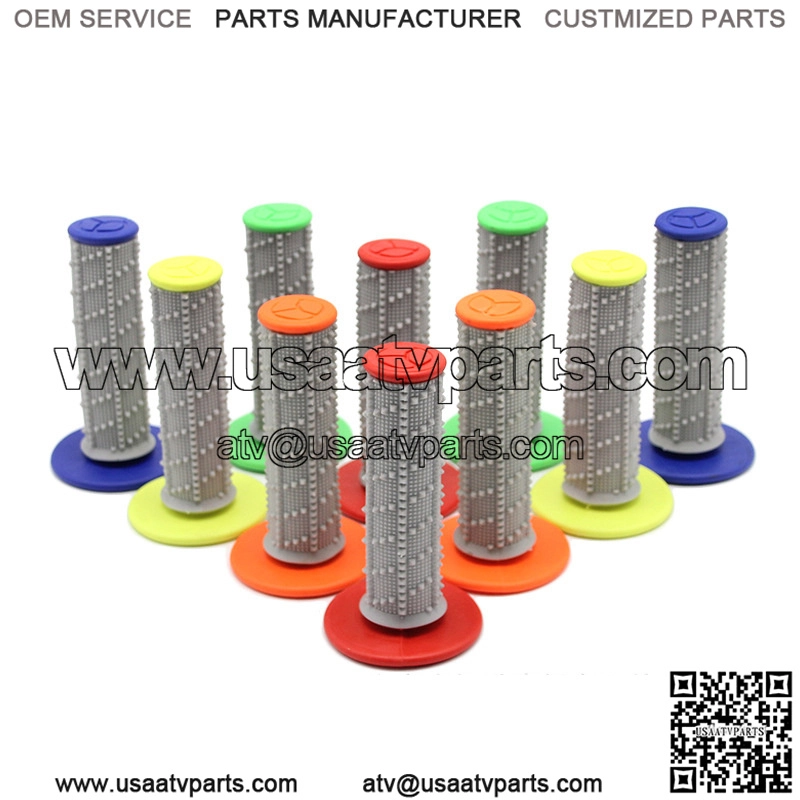 Processing customization is the use of handle size 125 (mm) model handle cover applicable models Honda CRF230, DR200, CBF150 article number SCL-2015050012 specifications red, blue, yellow suitable for models RMX250 RMX450Z RM125 DR-Z250 can be used for KX250F KX450F KX250F KX85 Matching model 250SX-F 500 EXC 250 300 530 Product name: Two-color rubber anti-skid handle cover for motorcycle Color: Green, blue, yellow, red, orange Specifications: Inner diameter 24mm/22mm Product material: Odorless soft rubber Applicable models: Off-road Motorcycles, rally cars, climbing cars. ATV