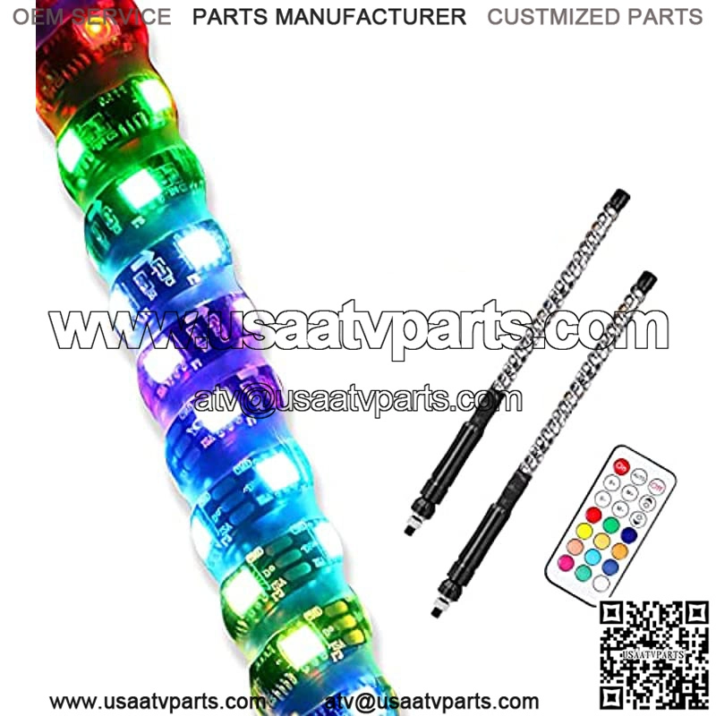 OFFROADTOWN Luces LED de l??tigo, 2 l??tigos iluminados de 2 pies con banderas RF, control remoto en espiral, bailarina/persecuci??n, antena de l??tigo iluminada para ATV, UTV, RZR, camiones, 4 x 4, Buggy