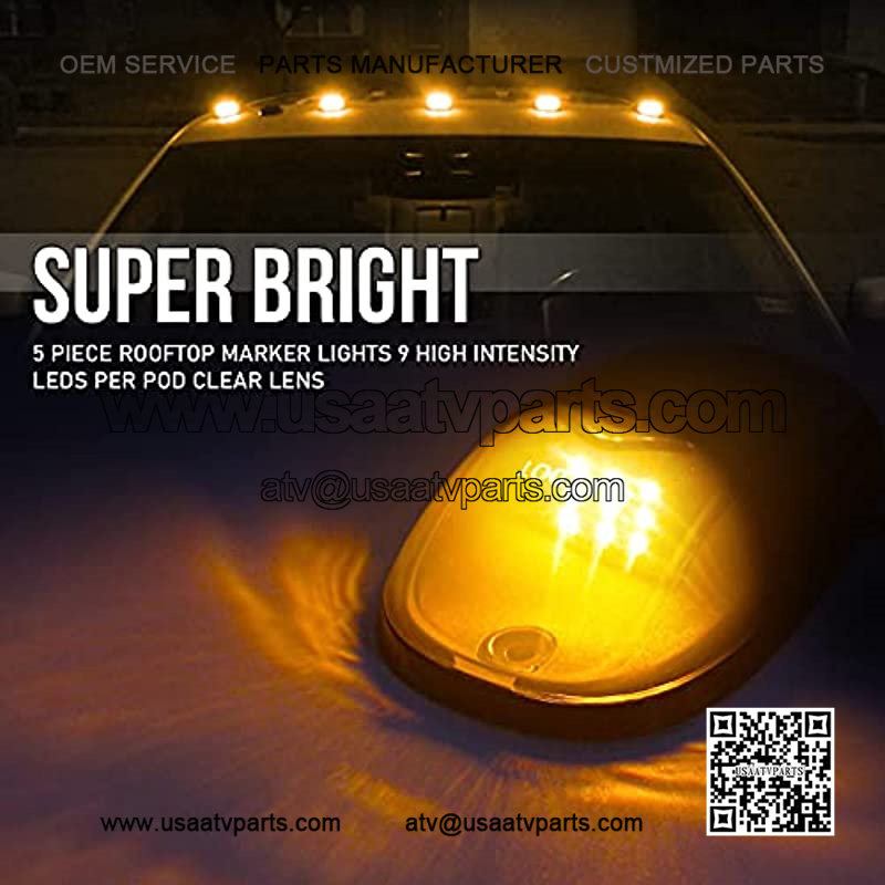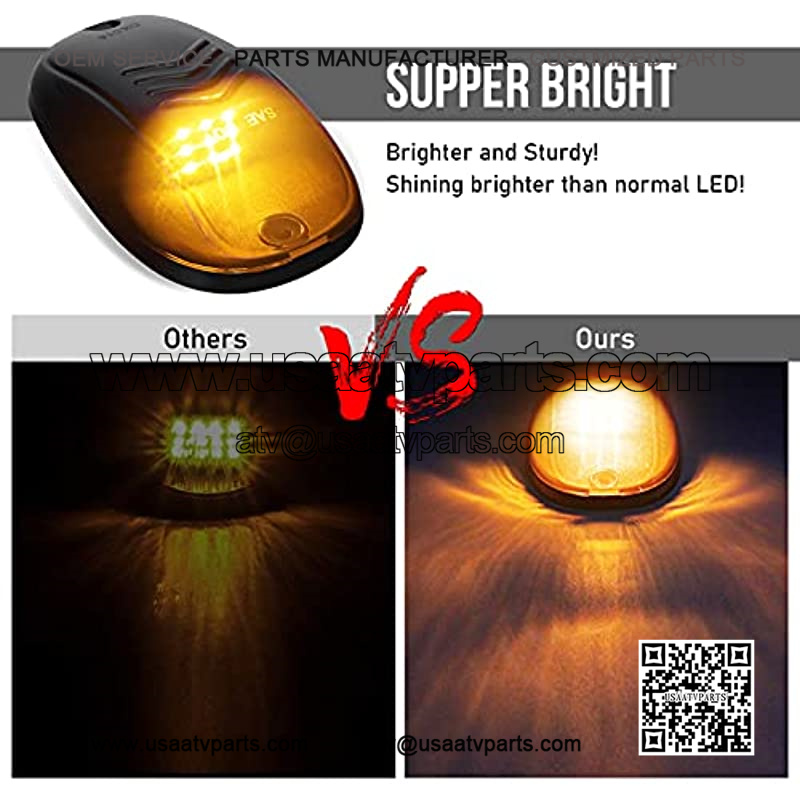 Ram Cab Lights Amber Application – Cab Marker Lights, Roof Cab Marker, Roof Running Light, Clearance Light.Waterproof Amber Led Cab Lights – Designed to Withstand Harsh Weather Conditions can Survive Intense Sustained Heavy Rain and Wind Even. Moisture and Vibration Resistant.Easy to Install Amber Cab Lights – Drilling May Required for Installation, Soft Pads Built-on, Protects Mounting Surface Prevents Water/Moisture Intrusion. Fit for Fast Feet or Curved Roofs.Amber Cab lights Fitment – Ford Ram SUV Truck 4X4 ATV Pickup Offroad, etc.