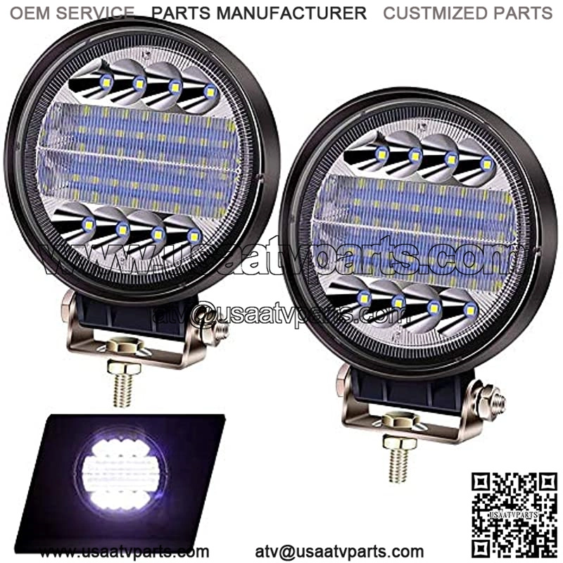 [FEATURES] 4.5 inch Round LED pods, 48 pcs of CREE LEDs, 96 watts/Per, 14400 lumen, 6000k Cool White Beam, 6063 aluminum alloy housing in fan-shape designed with large inner space makes it disate the heat faster and more effective.