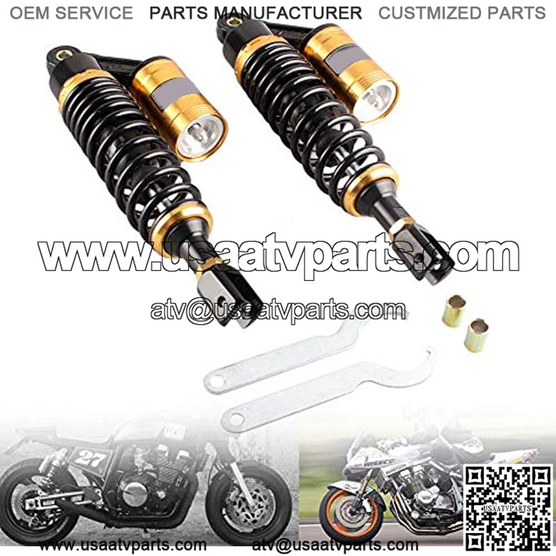 Pair 320mm Motorcycle Air Shock Absorbers Universal Fit for Honda Suzuki Yamaha ATV Go Kart Quad Dirt Sport Bikes Black & Gold Eye to Clevis