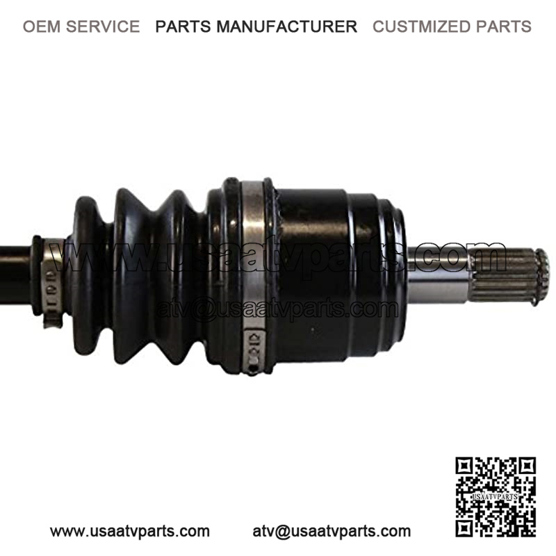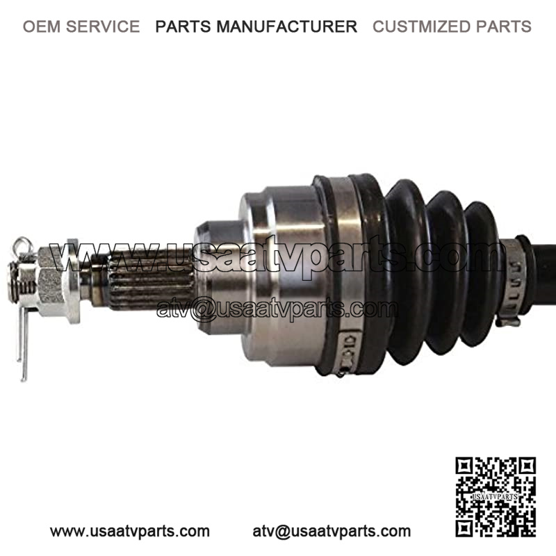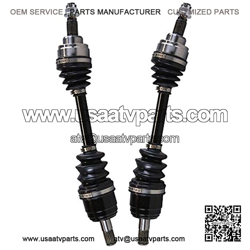 This package contains 2 front CV axle shaft assemblies. Each 40CR steel axle shaft is assembled with molybdenum disulfide lithium grease and heavy gauge neoprene puncture resistant boots to increase performance and withstand extreme high and low temperatures.