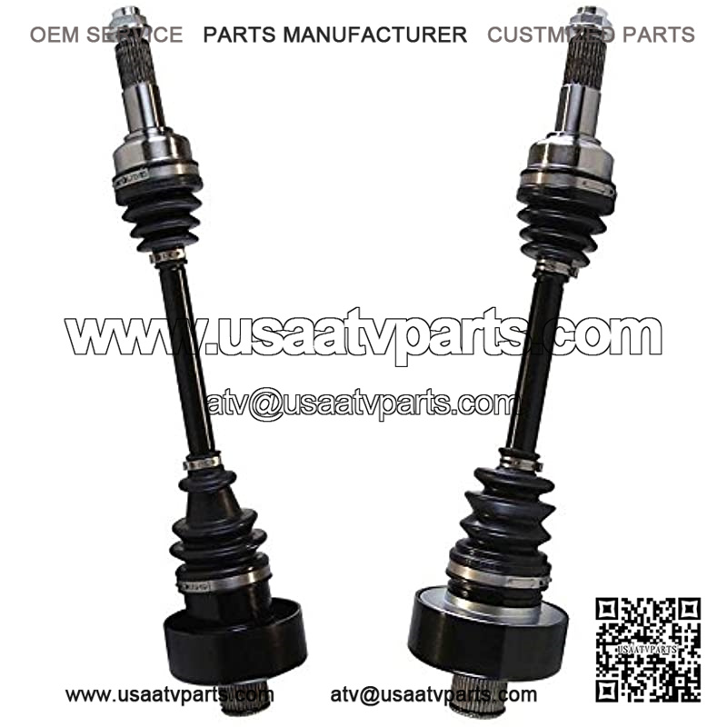 This package contains 2 rear CV axle shaft assemblies. Each 40CR steel axle shaft is assembled with molybdenum disulfide lithium grease and heavy gauge neoprene puncture resistant boots to increase performance and withstand extreme high and low temperatures.