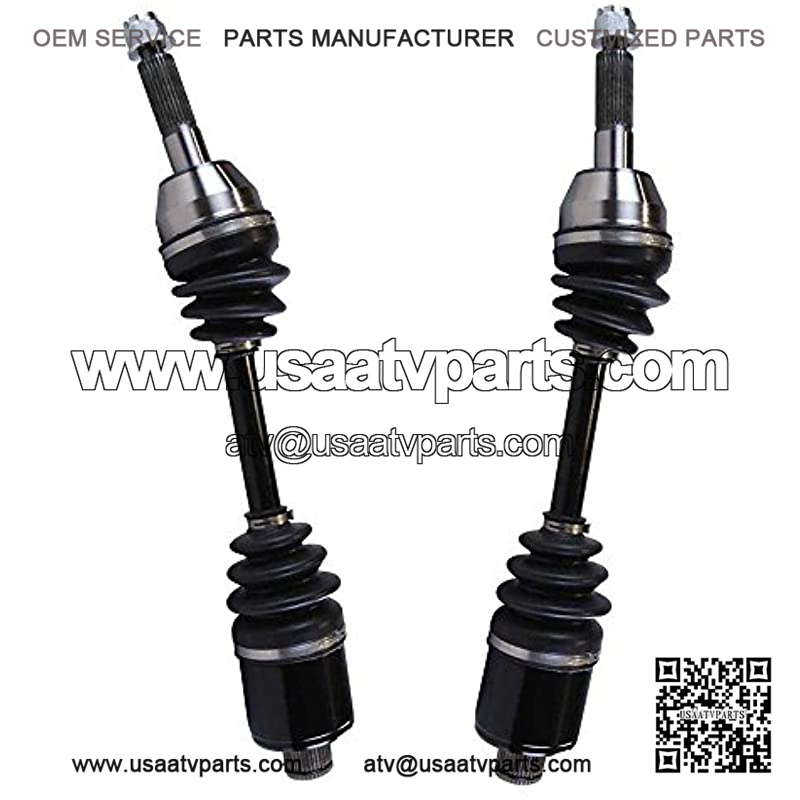 This package contains 2 rear CV axle shaft assemblies. Each 40CR steel axle shaft is assembled with molybdenum disulfide lithium grease and heavy gauge neoprene puncture resistant boots to increase performance and withstand extreme high and low temperatures.