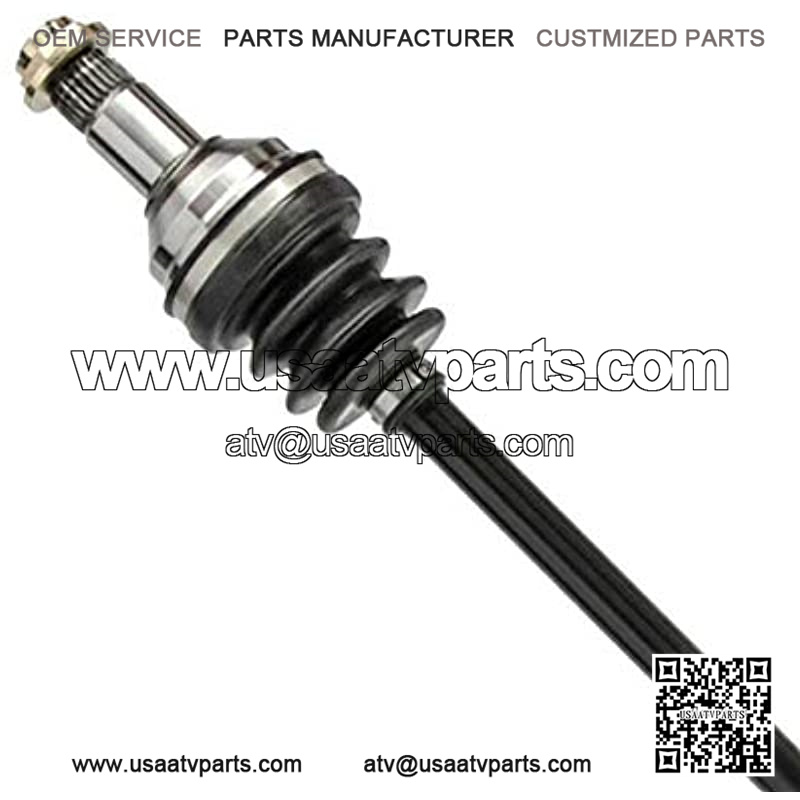 This package contains 2 rear CV axle shaft assemblies. Each 40CR steel axle shaft is assembled with molybdenum disulfide lithium grease and heavy gauge neoprene puncture resistant boots to increase performance and withstand extreme high and low temperatures.