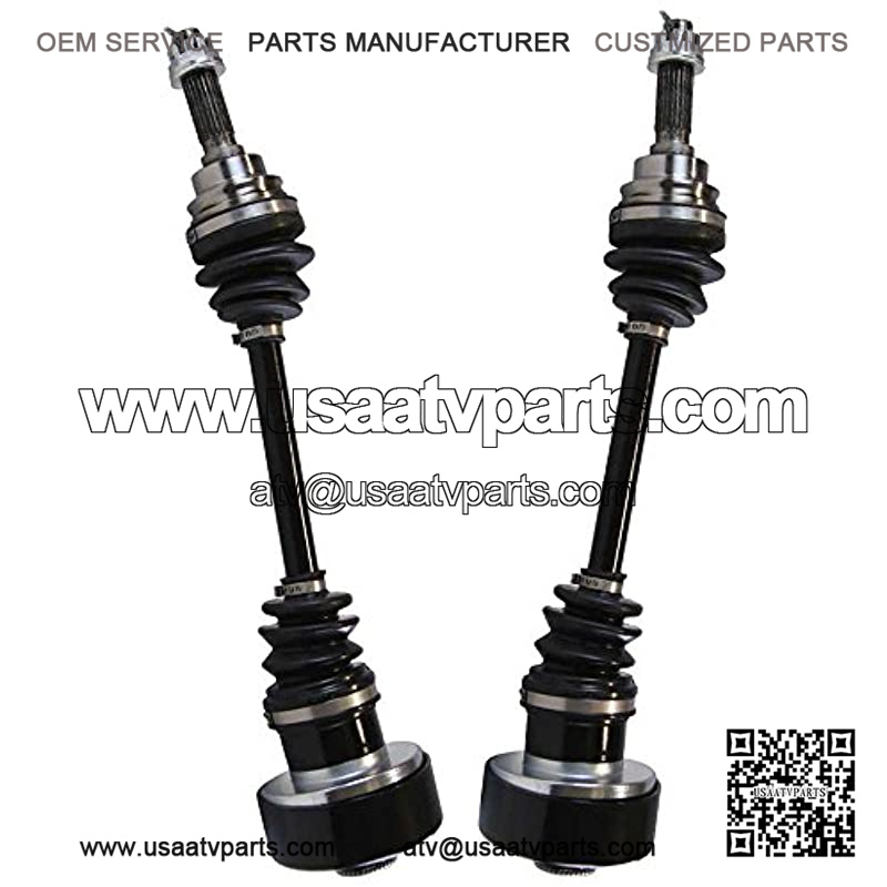 This package contains 2 rear CV axle shaft assemblies. Each 40CR steel axle shaft is assembled with molybdenum disulfide lithium grease and heavy gauge neoprene puncture resistant boots to increase performance and withstand extreme high and low temperatures.