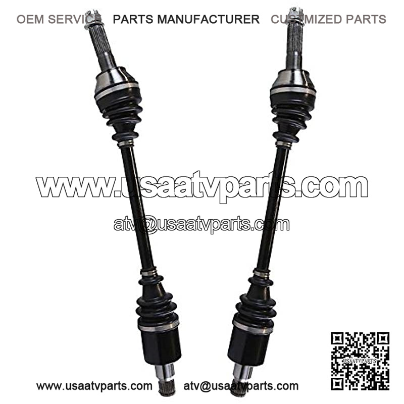 This package contains 2 rear CV axle shaft assemblies. Each 40CR steel axle shaft is assembled with molybdenum disulfide lithium grease and heavy gauge neoprene puncture resistant boots to increase performance and withstand extreme high and low temperatures.