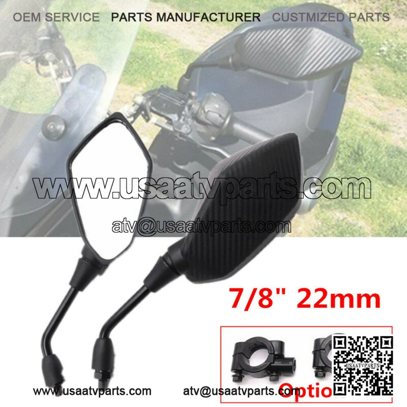 Pair of Motorcycle ATV Scooter 7/8″ 22mm Handle Bar End Rearview Side Mirrors