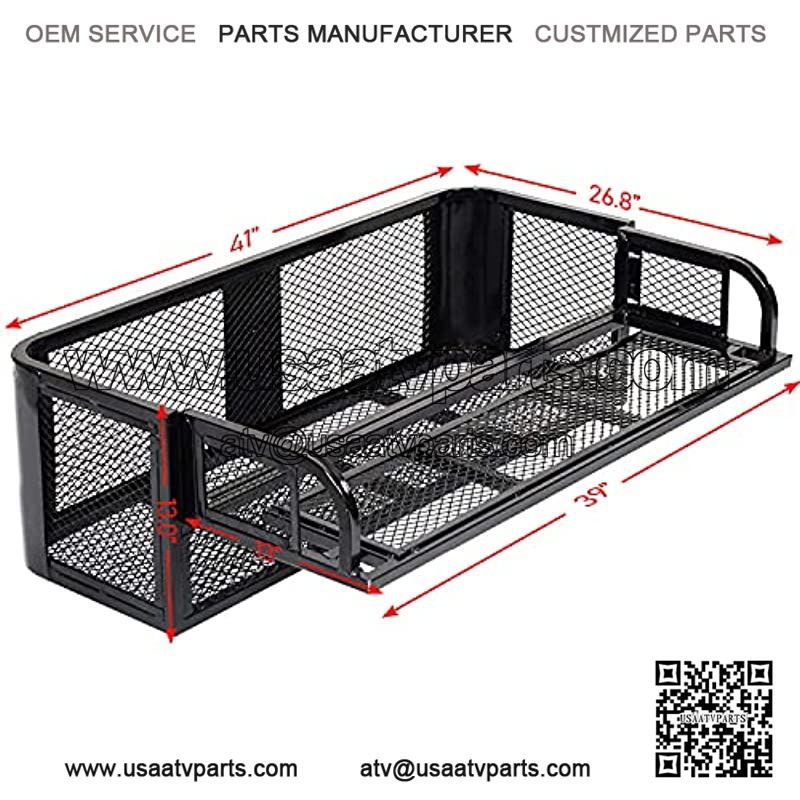 PLIOSAUR ATV Rear Drop Basket Rack ,with Steel Mesh Surface Detachable Steel Luggage Cargo,for Motorcycle ATV UTV(41″ x 14″x 13″ )