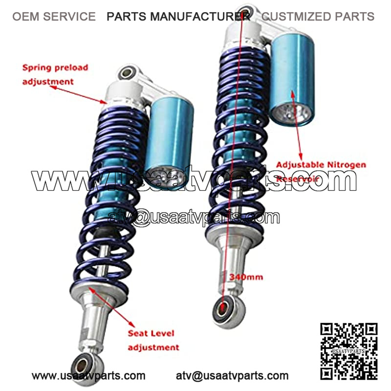 Pnndee Pair 340mm Universal Motorcycle Rear Air Shock Absorbers for all ATV Go Kart Quad Dirt Sport Bikes (blue&silver)