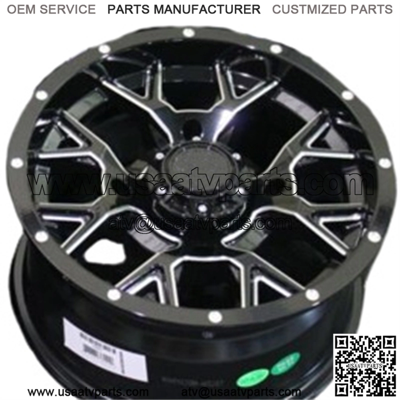 BRAND NEW SET OF (4) HEAVY DUTY 14″ QUADBOSS BARBWIRE BLACK / MILLED ALUMINUM ATV / UTV WHEELS. 4 CENTER CAPS ,16 LUG NUTS ARE INCLUDED FREE