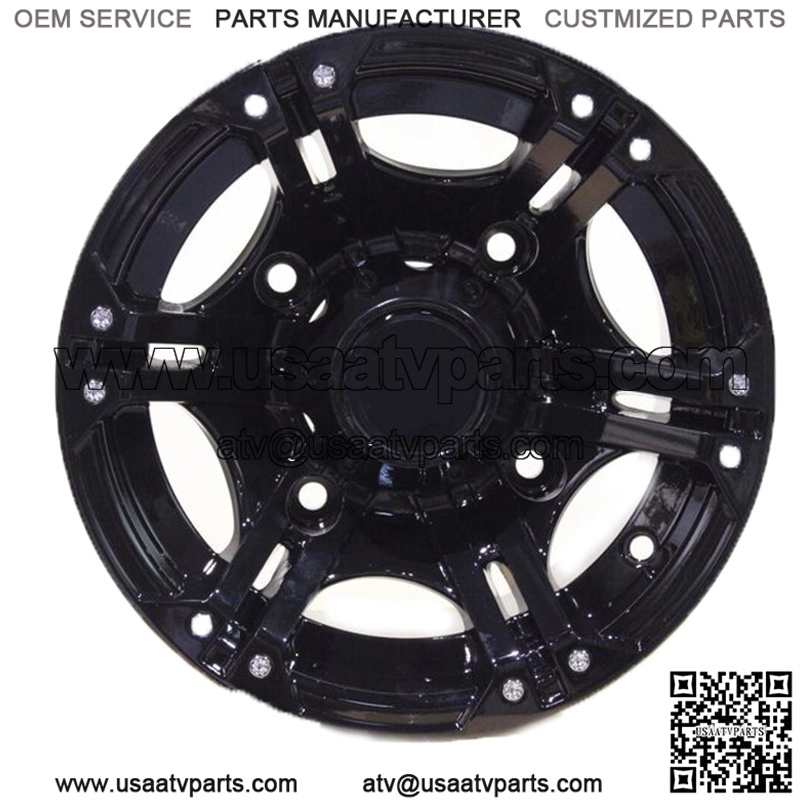 BRAND NEW SET OF (4) HEAVY DUTY 12″ VIPER BLACK ALUMINUM ATV / UTV WHEELS. 4 CENTER CAPS AND 16 LUG NUTS ARE INCLUDED FREE