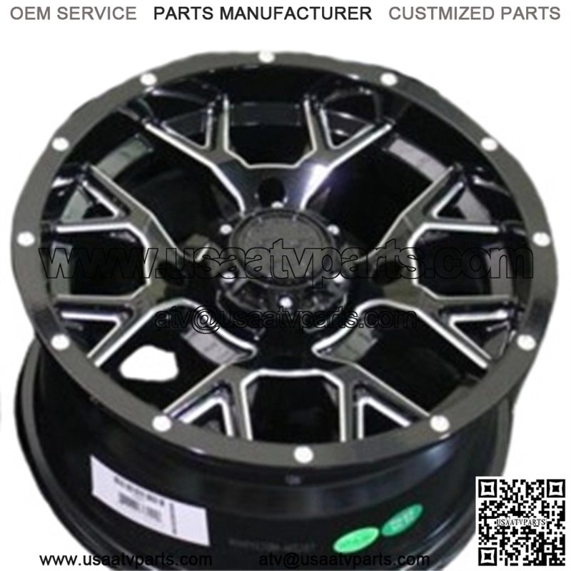 BRAND NEW SET OF (4) HEAVY DUTY 14″ QUADBOSS BARBWIRE BLACK / MILLED ALUMINUM ATV / UTV WHEELS. 4 CENTER CAPS ,16 LUG NUTS ARE INCLUDED FREE