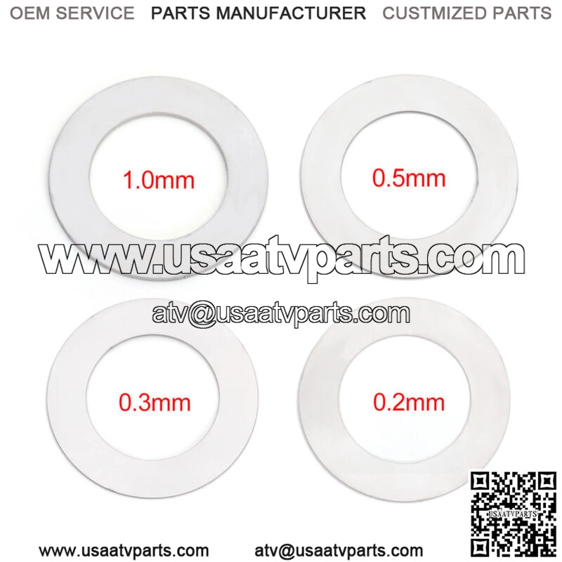 Fit for Bennche Bighorn 500, 700, 700HD, 700X-HDFit for Excalibur UTV500-4, UTV700-4, UTV700-5Fit for HiSUN 500 700 ATV/UTVFit for Massimo Alligator 500, 700, 700-4Fit for Menards Yardsport YS500, YS700Fit for Qlink FrontRunner 500 EFI, 700 EFI, 700XL EFIFit for Supermach UTV500-BF-TL, UTV700-BF-TLFit for MENARDS YARDSPORT EFI UTV 500 & 700 cc Fit for YAMAHA RHINO 660 2004-2007Fit for YAMAHA GRIZZLY 660 2002-2008 Material: Stainless Steel(OD 30.8mm ID 19.2mm)Included:1x 1.0mm thickness shim 1x 0.2mm thickness shim1x0.3mm thickness shim1x 0.5mm thickness shim