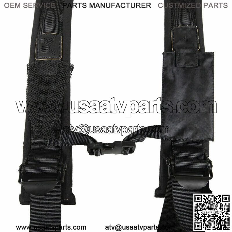 4 point harness with 2 inch h-style padded shoulder straps; secure latch style lap belt with quick release buckle