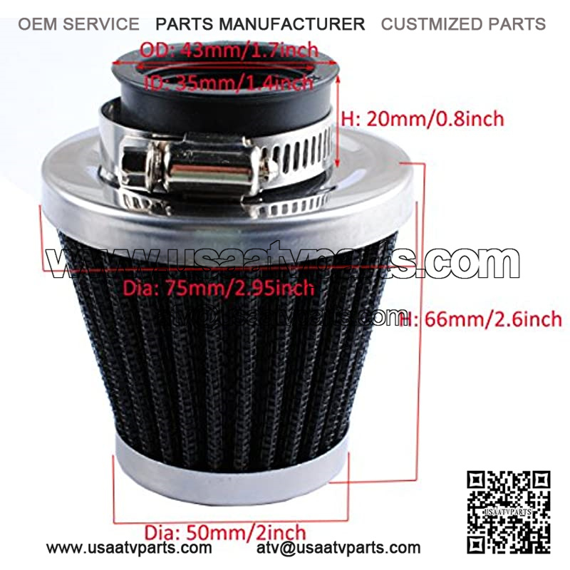 35mm Motorcycles air filter in conical style with dual layer steel mesh design, universal fits for most 35mm motorcycles