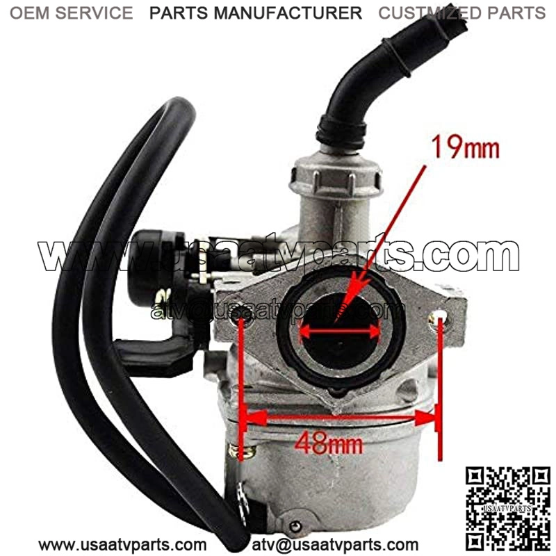 Mounting bolt dimension:48mm/1.88″,the air filter interface outside diameter:35mm/1.37″,Intake inside diameter:19mm/0.74″The carburetor has a right-hand throttle valve for most 50cc 70CC 80cc 80cc 85cc 90cc 110cc ATV 4-stroke engine.Replacement all most sReplacement for 4 stroke 49cc-125cc horizontal engine,not for GY6 engine or vertical engine,hand choke carburetor not for cable choke or electric choke carb(read description for fitment infos)This kit does not replacement for all XR70/XR70R/CRF70/XR80/Z50 and early model than 2008 for CRF50 XR50Warranty:We are always available to help our customers.Please message us for replacement or refund if you are not satisfied with the orderpls confirm The size of the product meets your requirements before you purchaseNote:please allow 0.5-1 inch difference due to manual measurement.1inch=2.54cmSize:Mounting bolt dimension:48mm/1.88″Air filter interface outside diameter:35mm/1.37″Intake inside diameter:19mm/0.74″Replacement for:4 Stroke 49cc-125c