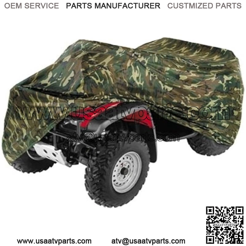 Snug and breathable Storage ATV quad bike cover provides year round indoor and outdoor protection against finish destroying agents such as sunshine, dust, dirt, tree sap, bird droppings, salt or other pollution. Woodland type green/brown camouflage printed nylon fabric is perfect to help disguise your four wheeler and gear while hunting, camping, or exploring. Cover comes complete with a free stuff sack for portability. Take your Quad cover with you anywhere your ATV can roll! Elastic bungee in the hemline holds the cover snug to the chassis. Our 4 Wheeler cover is breathable and allows air to circulate beneath. Semi-custom fitment to accommodate most ATV and quad bike all terrain vehicles in the industry. This item will fit the vehicle specified in the listing title WITHOUT aftermarket equipment or accessories. If your ATV/Quad has accessories or modifications, PLEASE CONFIRM FITMENT WITH US PRIOR TO PURCHASE. 1 YEAR WARRANTY
