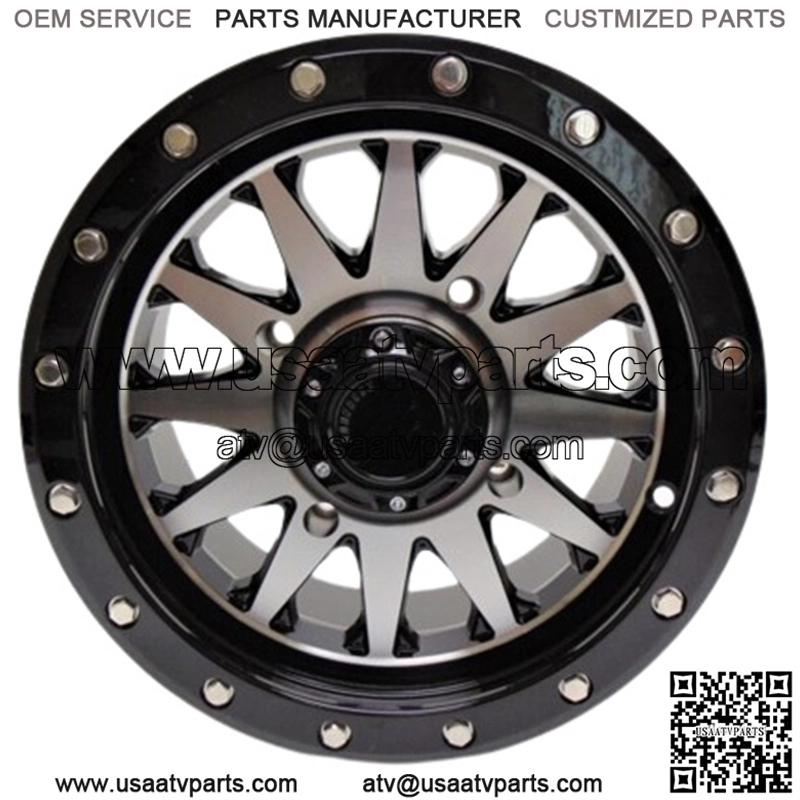 QuadBoss Wagon Wheel 14×7 4+3 Offset 4/156 Black/Machined RT-GW106147156BMA (For: Polaris)