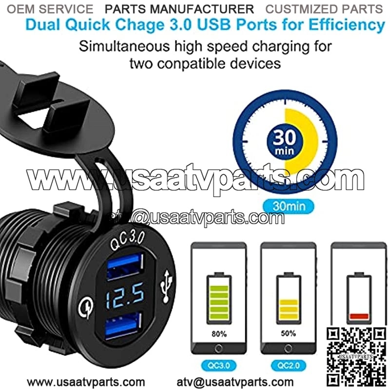 Quick Charge 3.0 Dual USB Charger Socket,with LED Digital Voltmeter & Wire Fuse DIY Kit,Aluminum Power Outlet Fast Charge, for 12V/24V Car, Golf Cart, Boat, RV, Motorcycle, Truck and More
