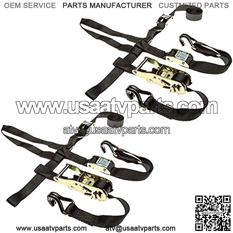 This pack of two Black Widow ATV wheel tie-down bonnet straps comes with two heavy-duty ratchet straps each with two cam buckles for securing tight against wheel. Designed to fit most ATV and UTV tire sizes. Rubber coated hook end attachments provide added grip and anchor surface protection. Multiple straps are required for securing an ATV, UTV, or 3 wheeler vehicle tires for trailer transport.