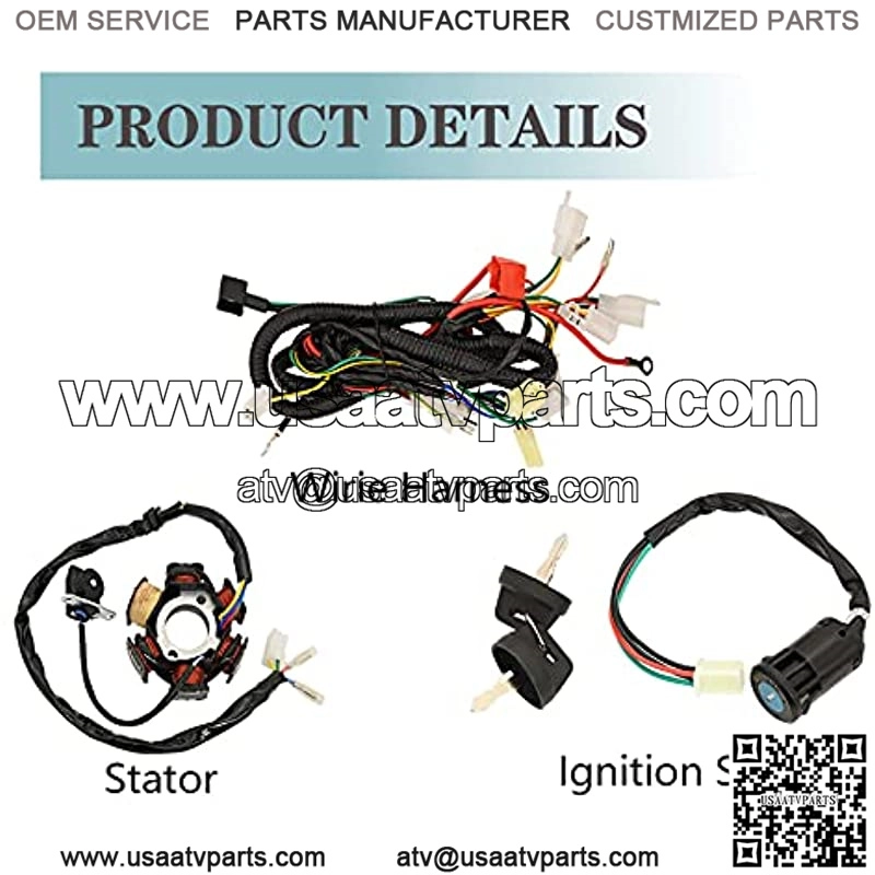 The complete electrics wiring harness are made of all-copper, and the thickened copper is more durable and safe, ensuring high-performance start-up. This gy6 engine wiring harness kit does not compatible with 50cc 70cc 110cc 125cc Zongshen Lifan ATV / QUAD with different stator. Please check the pictures carefully before buying, especially the pictures of magneto stator.