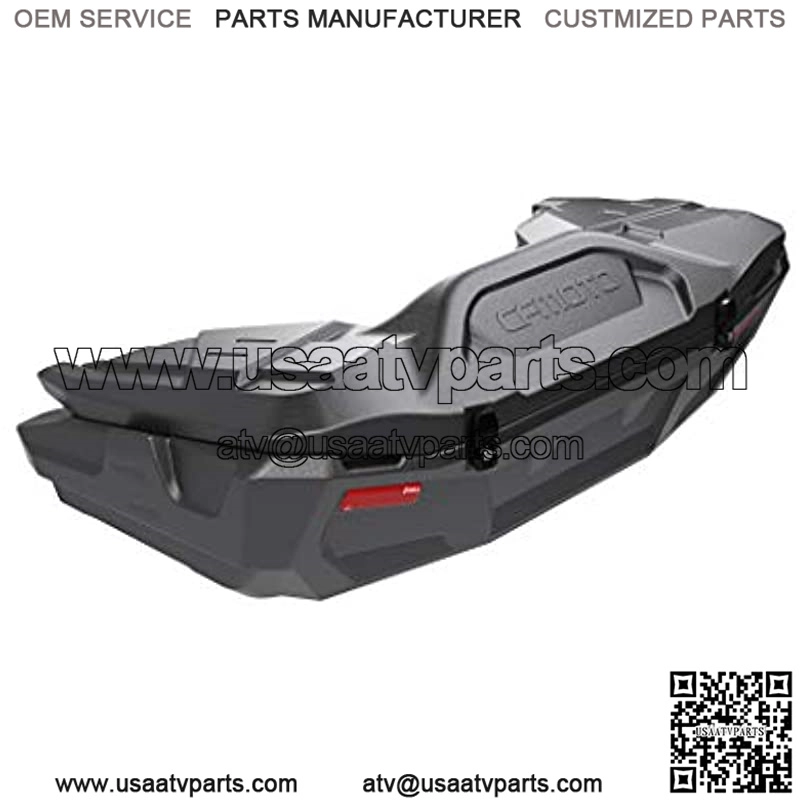 The rear Box was designed especially for quad bike for CFMOTO Cforce 600/X6 and suits for this model only. It fits perfectly on the luggage rack and neither bothers the passenger nor protrudes beyond dimensions of the quad. It will be an ideal complement to your ATV. Durable metal lockers with keys will ensure the safety of your items. The sealing rubber on rear Box top will protect your belongings from humidity, dirt, and dust even in the toughest conditions. The rear Box goes with quick-release mounts that are installed into regular holes in the luggage rack. You can also place on coffer up to 4 branded canisters CFMOTO designed exclusively for this coffer. Complete set: 4 quick-release mount; 2 meta