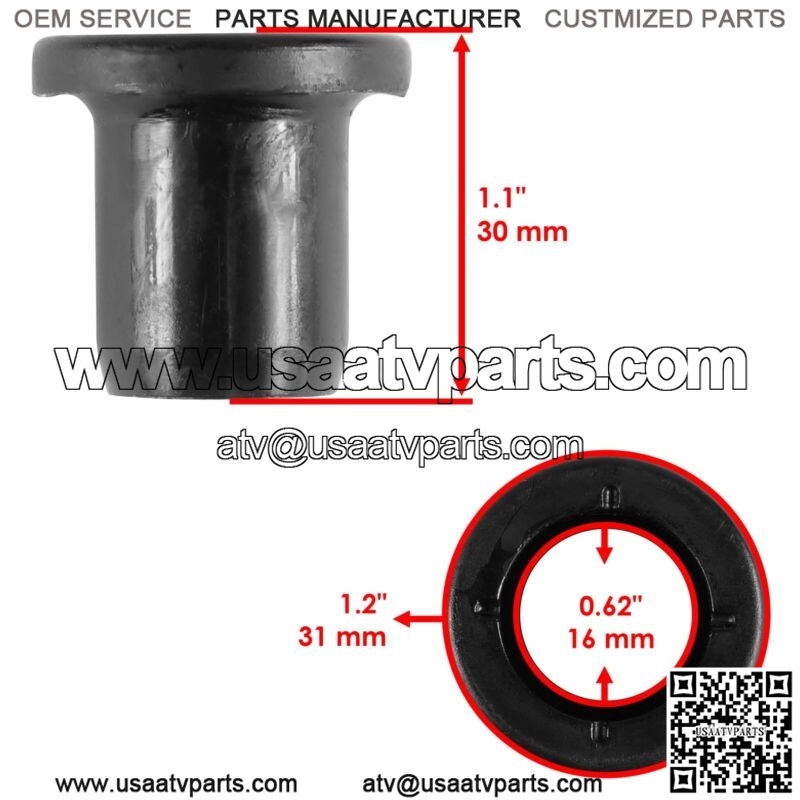 Premium Quality Replacement PartRear Lower Outer Left or Right Control Arm Bushing Kit For Polaris Models:Ranger Crew 570 2014-2023Order Includes:1 x Long Pivot Shaft | 5138796Length : 139.8mm | 5.5″Inner Diameter : 10.4mm | 0.4″Outer Diameter : 16 mm | 0.63″ 2 x Short Bushing | 5439874 5436832 5436505Height : 30 mm | 1.1″Inner Diameter : 16 mm | 0.62″Outer Diameter : 31 mm | 1.2″ Note: Installs On Location (F) In Second PictureControl Arm Part Number:Rear Lower Left & Right 1018995-458**