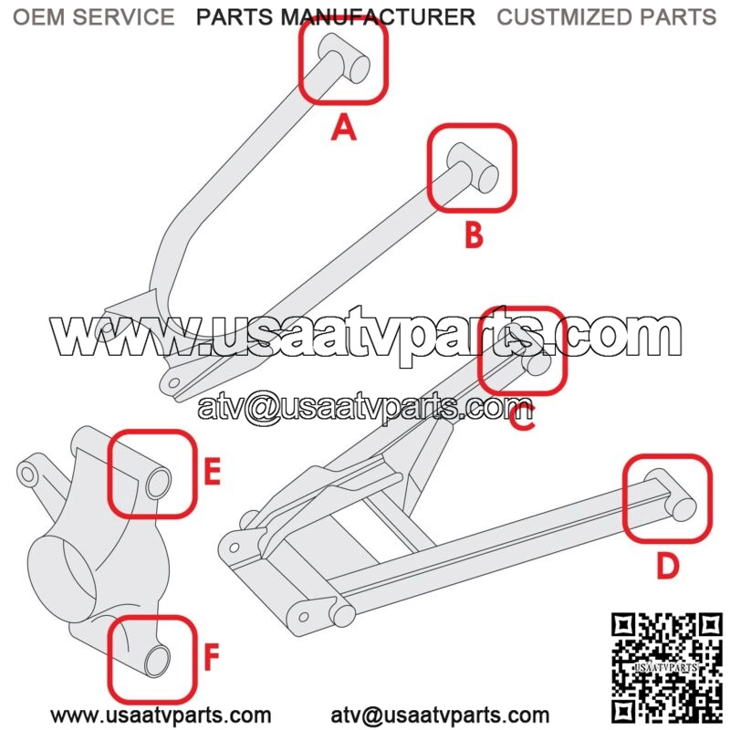 Premium Quality Replacement PartRear Lower Outer Left or Right Control Arm Bushing Kit For Polaris Models:Ranger ETX 2015-2016Order Includes:1 x Long Pivot Shaft | 5138796Length : 139.8mm | 5.5″Inner Diameter : 10.4mm | 0.4″Outer Diameter : 16 mm | 0.63″ 2 x Short Bushing | 5439874 5436832 5436505Height : 30 mm | 1.1″Inner Diameter : 16 mm | 0.62″Outer Diameter : 31 mm | 1.2″ Note: Installs On Location (F) In Second PictureControl Arm Part Number:Rear Lower Left & Right 1018995-458**