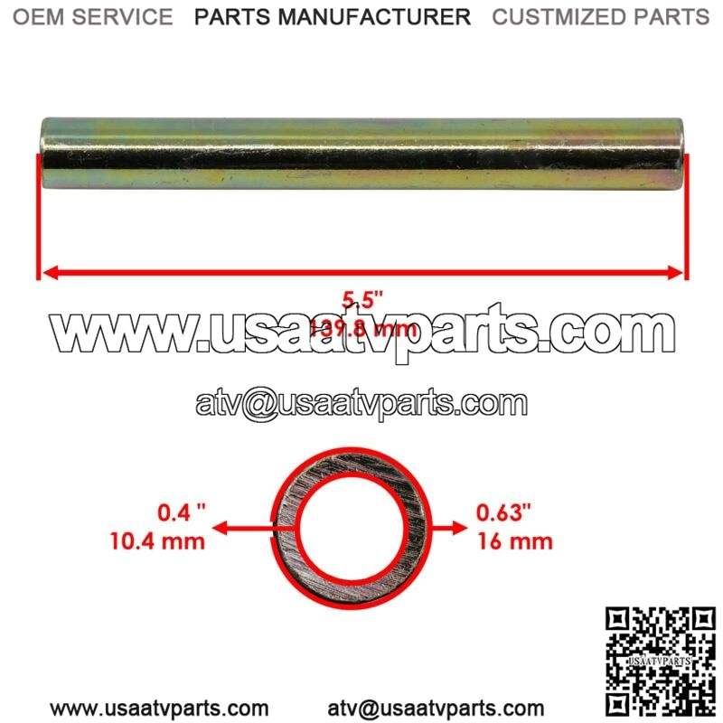 Premium Quality Replacement PartRear Lower Outer Left or Right Control Arm Bushing Kit For Polaris Models:Ranger XP 570 2016Order Includes:1 x Long Pivot Shaft | 5138796Length : 139.8mm | 5.5″Inner Diameter : 10.4mm | 0.4″Outer Diameter : 16 mm | 0.63″ 2 x Short Bushing | 5439874 5436832 5436505Height : 30 mm | 1.1″Inner Diameter : 16 mm | 0.62″Outer Diameter : 31 mm | 1.2″ Note: Installs On Location (F) In Second PictureControl Arm Part Number:Rear Lower Left 1018460-458Rear Lower Right 1018461-458**