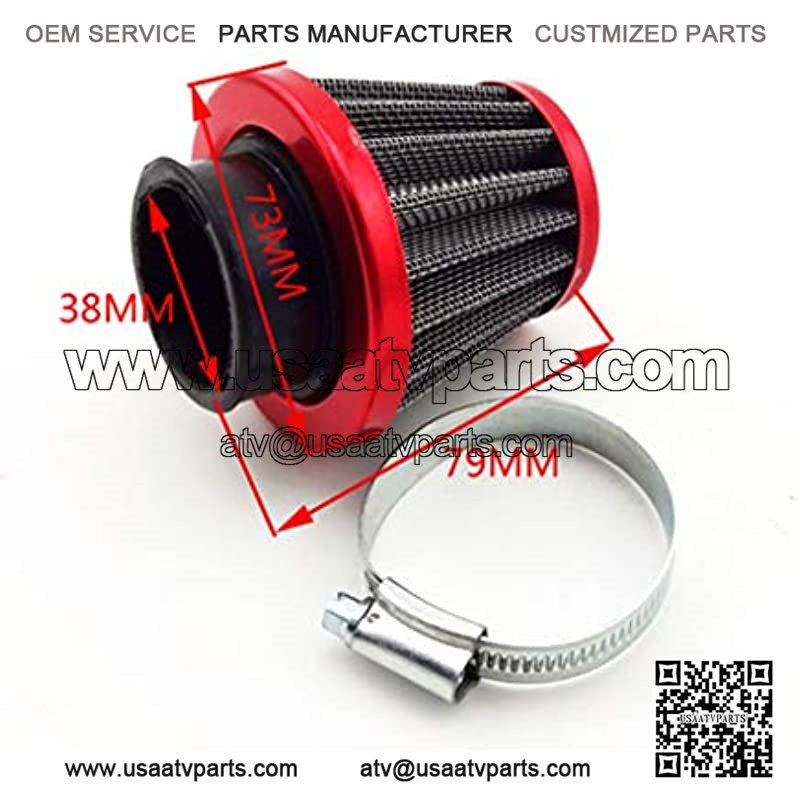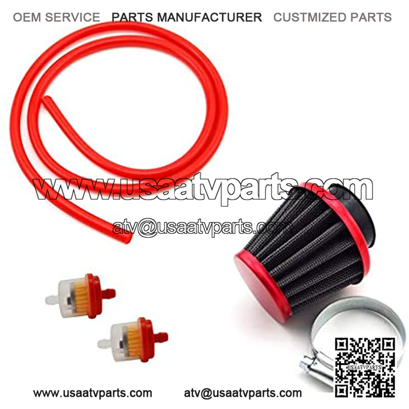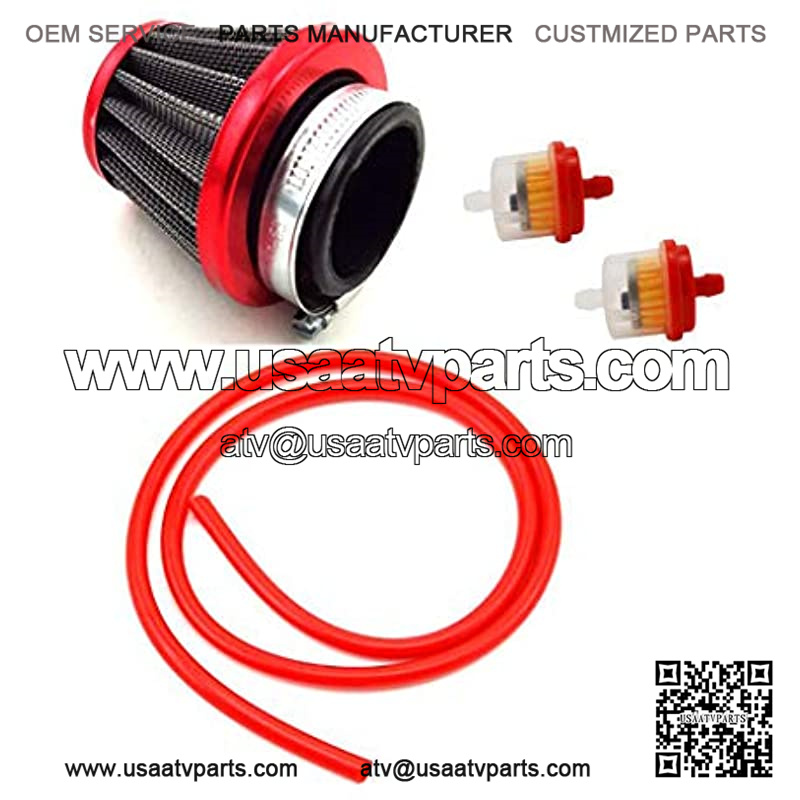 Red 38mm Air Filter Fule Cleaner Gas Line Hose For 50cc 70cc 90cc 110cc 125cc Dirt Pit Bike ATV Quad Monkey Bike Motocross Motorcycle Go Kart Cart And GY6 50cc QMB139 Engine Scooter Moped