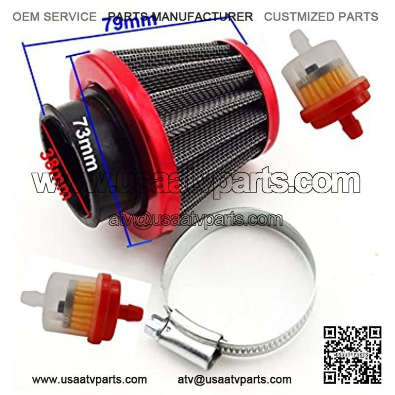 Fits: Red Motorcycle 38mm Air Filter Fuel Cleaner For 50 90cc 110cc 125cc Pit Dirt Bike ATV & GY6 50cc QMB139 Engine Moped Scooter