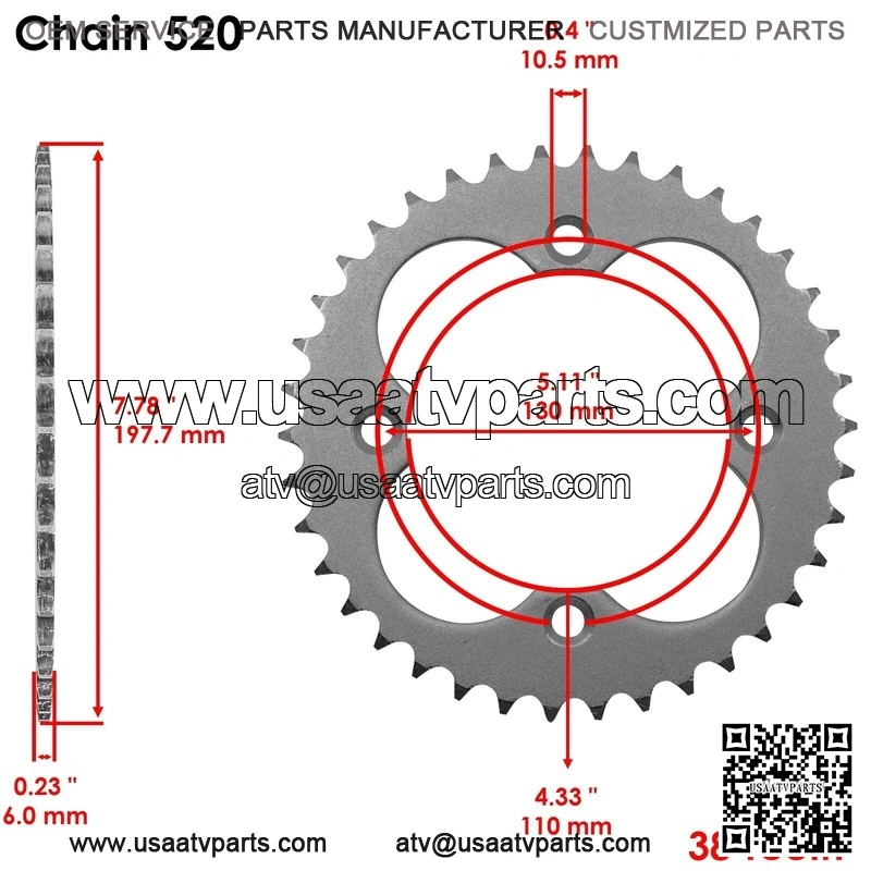 3. Rear Sprocket 38 Teeth / Material: C49 High Carbon Steel