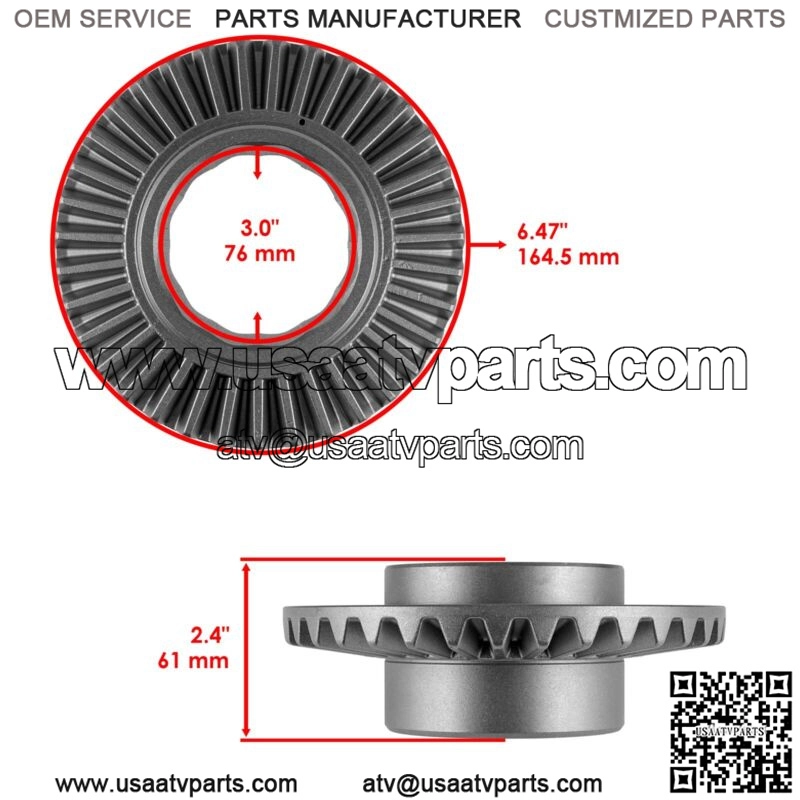 Premium Quality Replacement PartWe strongly suggest comparing the posted picture to your faulty unit!FRONT DIFFERENTIAL GEAR RING and PINION For POLARIS Models:RZR XP 1000 2017RZR XP 4 1000 2017Part Number :3235845Dimensions:Ring Gear Height: 61mm | 2.4″Ring Gear Outer Diamete: 164.5mm | 6.47″Ring Gear Approx Inner Diameter: 76mm | 3.0″Pinion Gear Height: 105.7mm | 4.16″Pinion Gear Big Gear Diamete: 62.5mm | 2.46″Pinion Gear Spline Diamete: 24mm | .94″Order Includes:1x Ring Gear1x Pinion Gear**
