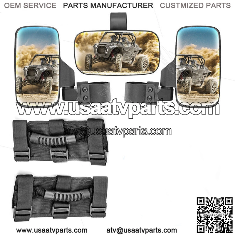 Roll Bar Cage Rear View Mirrors w/ Grips For Polaris UTV RZR XP 1000 900 570 800 (Fits: Yamaha Rhino 660)