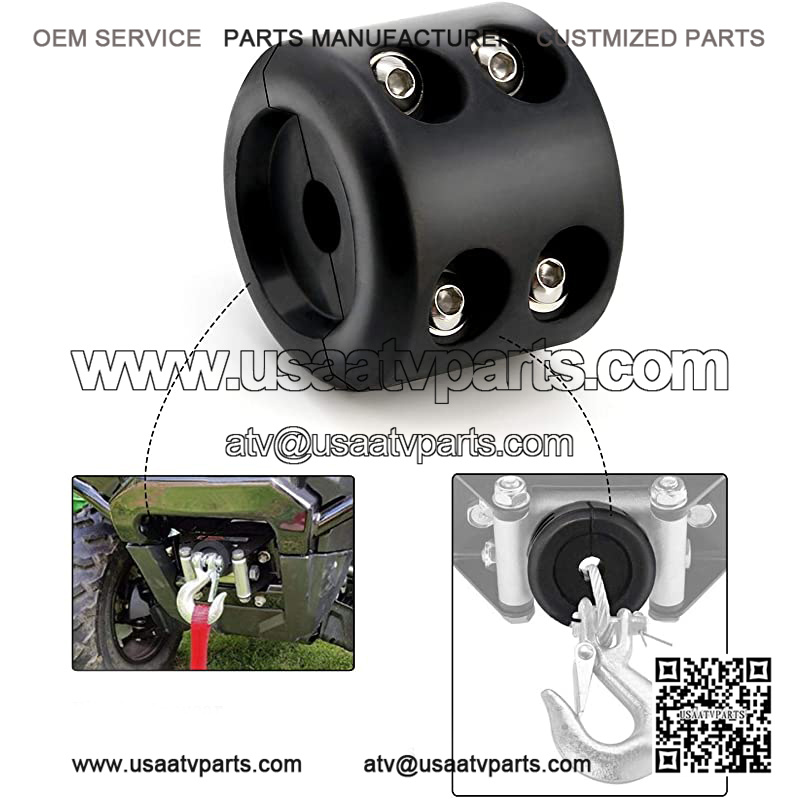 Rubber Stopper Compatible with KFI ATV Winch Cable. Protects Towing Hook, Synthetic Rope, Cable Line from Wear or Damage Fairlead, Hawse, Bumper. Quick Easy Installation, Screws and Tools Included.