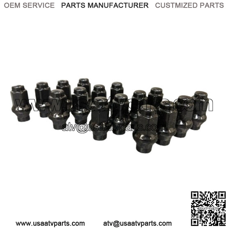 SET OF 16 BLACK M10x1.25 ET EXTENDED THREAD BEVELED TAPERED LUG NUTS