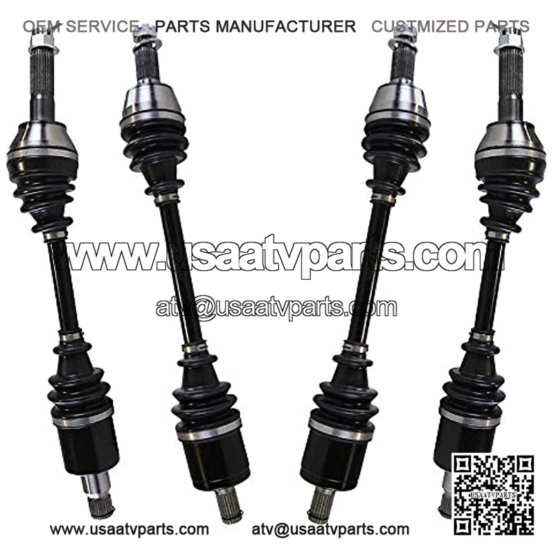 This package contains 2 front and 2 rear CV axle shaft assemblies. Each 40CR steel axle shaft is assembled with molybdenum disulfide lithium grease and heavy gauge neoprene puncture resistant boots to increase performance and withstand extreme high and low temperatures.