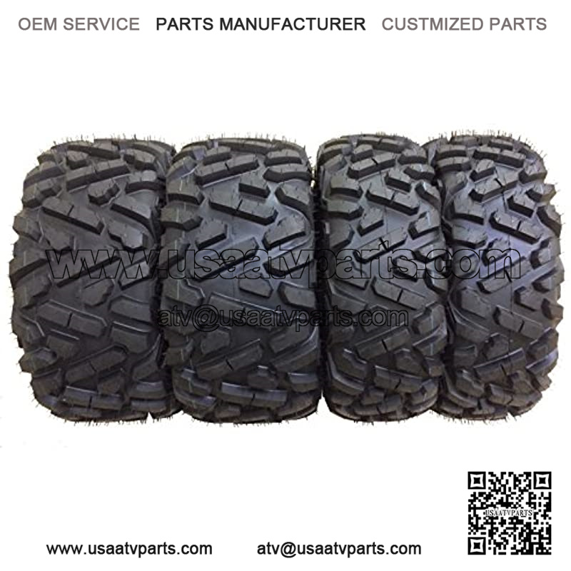 Full set (2 front + 2 rear) for complete replacement Advanced radial construction delivers the most comfortable, trail-compliant ride. Original equipment tread design, fitments for a variety of 2 and 4 wheel drive ATV applications Top notch handling in dirt, mud or rock Superior traction in wooGreat in the desert Additional shoulder lugs protect rim and sidewall Heavy 6 ply rated nylon+steel construction resists punctures and abrasionsTire SpecificationsTireSize: 27x9R14Brand: WANDAPattern: P350Ply Rated: 6Tread Depth: 0.79″Rim Width: 7″Max Load: 585lbs@7psiTire SpecificationsTireSize: 27x11R14Brand: WANDAPattern: P350Ply Rated: 6Tread Depth: 0.79″Rim Width: 9″Max Load: 710lbs@14psi