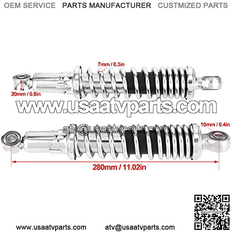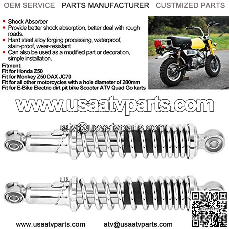 Fitment ——— Motorcycle rear shock absorbers replacement parts, designed to fit for Honda Z50, for Monkey Z50 DAX JC70. Commonly used for all other motorcycles with a hole distance of 280mm, such as for E Bike Electric dirt pit bike Scooter ATV Quad Go karts.