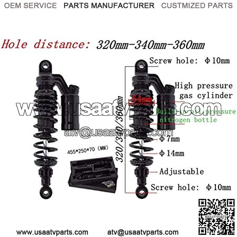 Shock Absorbers Rear Shock 320/340/ 360mm Universal Motorcycle Scooter Damping Adjustable Rear Shock Absorbers Fit for Yamaha Suzuki Kawasaki ATV Black (Color : 360mm 1pair)